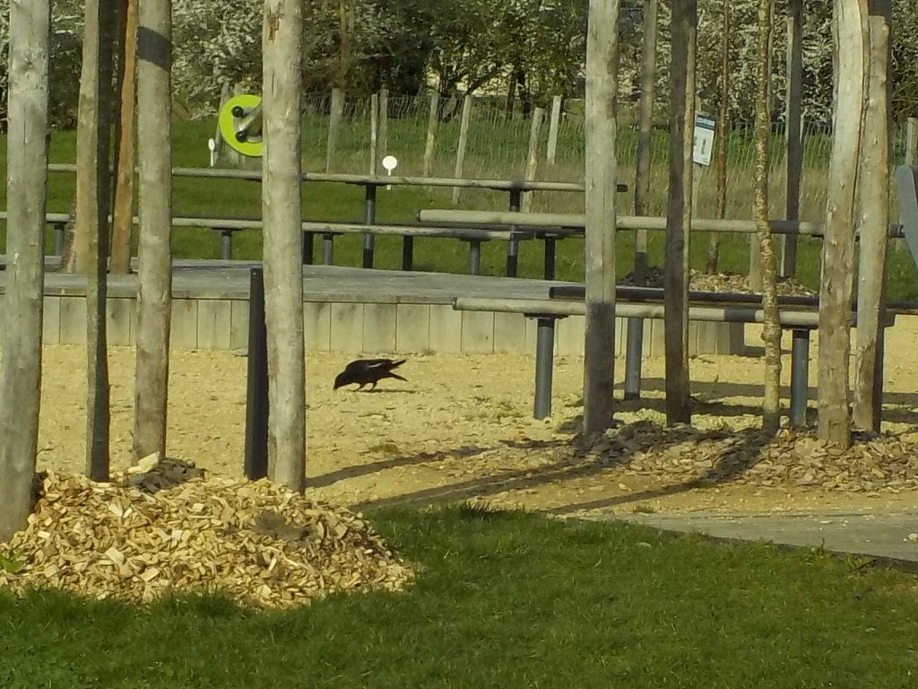 En allant faire classe dehors dans le parc des Montgorges, devant notre école, nous avons vu une corneille qui cherchait à manger !