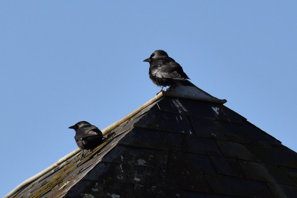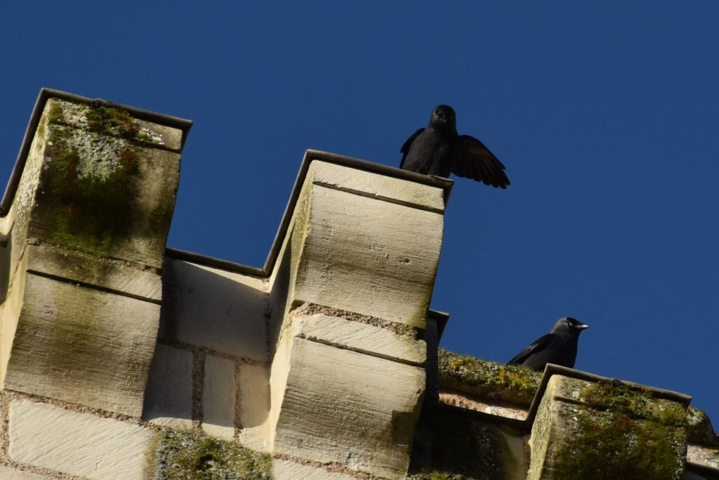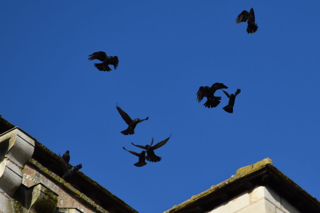 Nous avons pu observer des corneilles noires sur le toit de la classe des TPS-PS-MS en regardant par les fenêtres de notre classe qui est à l’étage. Pendant les vacances, la maîtresse a pris des photos de corneilles de son jardin. Elles vivent en ville et volent autour du donjon de la Roche-Posay.