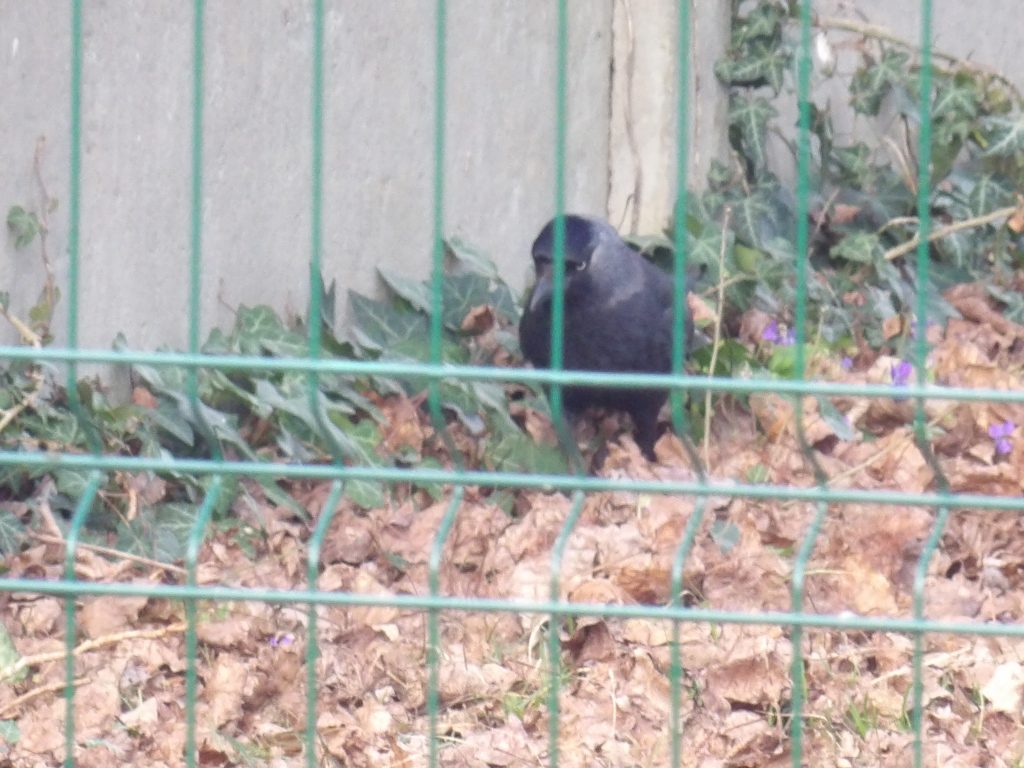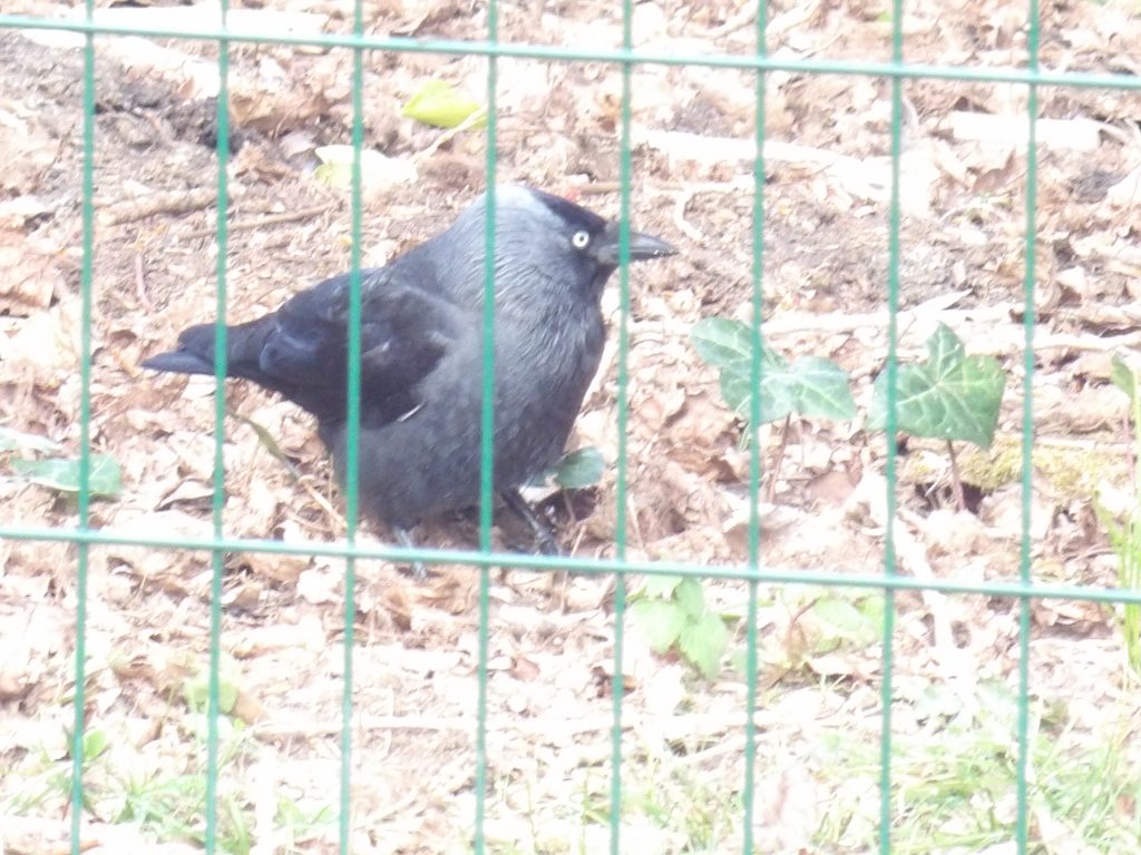 Depuis la fenêtre de la classe, nous avons souvent l’occasion d’observer les oiseaux qui se posent régulièrement sur la pelouse de la cour d’été. Parmi les espèces que nous pouvons voir, il y a les corneilles. Malheureusement pour nous, elles n’aiment pas beaucoup nos bavardages et se montrent timides devant l’objectif. Donc nous n’avons pu prendre en photo que celles qui étaient un peu plus loin, protégées par le grillage de l’école.