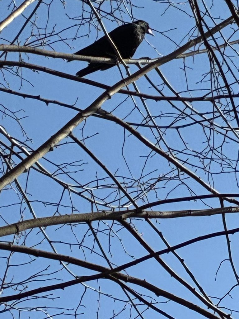 Cet aprĂšs-midi, une corneille est venue nous rendre visite pendant la rĂ©crĂ©ation. Elle s’est perchĂ©e dans un tilleul de la cour.