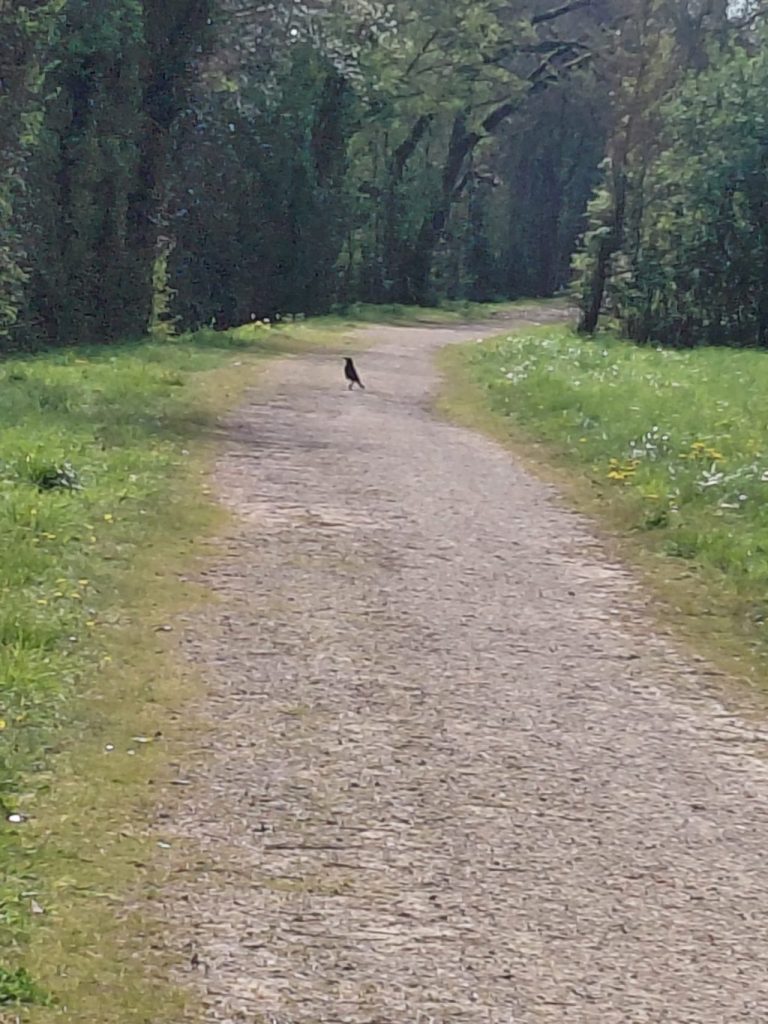 En allant à la rechercher des jacinthes des bois ce matin, nous avons aperçu un oiseau qui ressemble à une corneille.