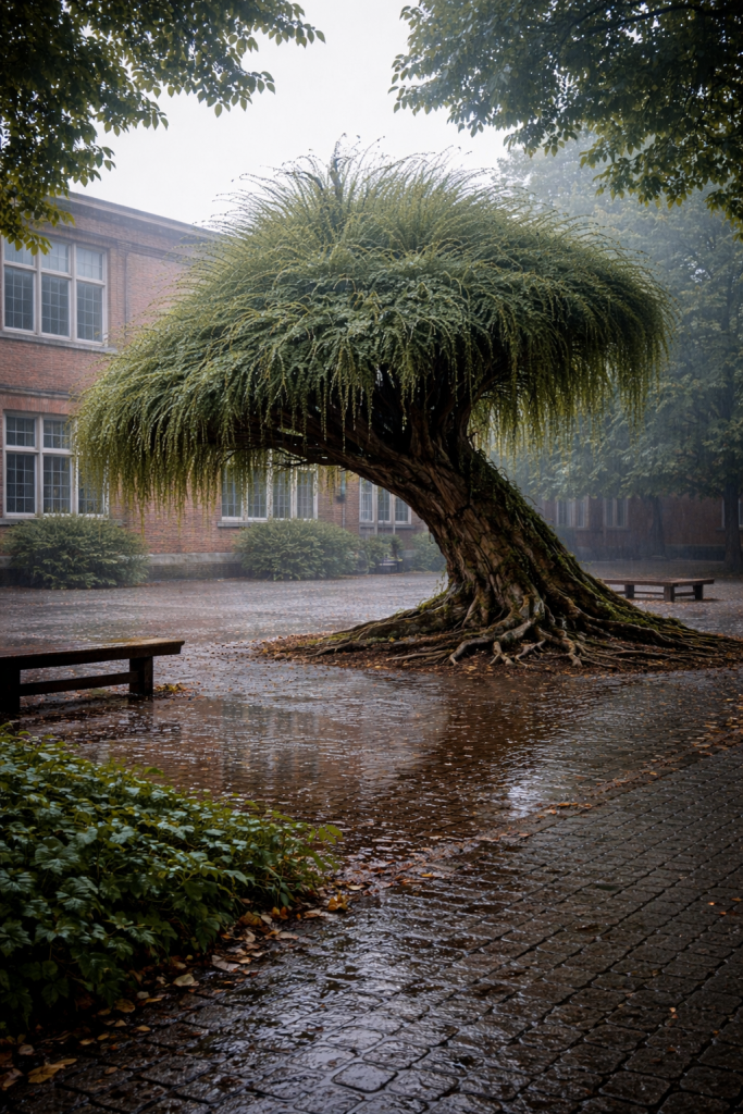 Nous avons justement un chuchotier au milieu de notre cour. Nous aimons beaucoup jouer aux billes entre ses racines.