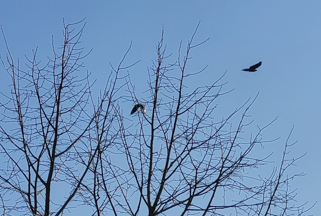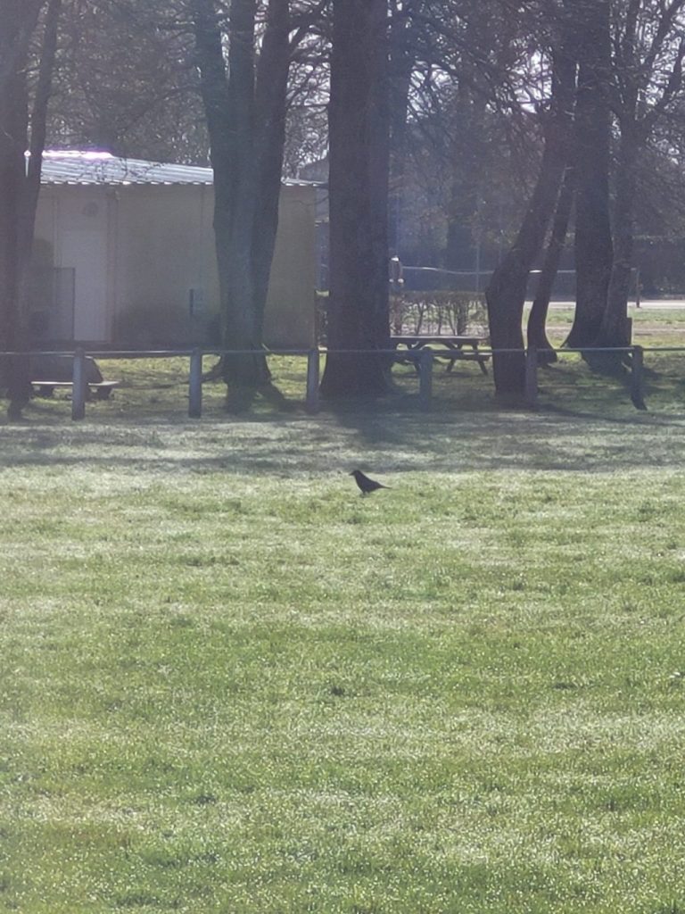Une fois arrivés au city stade de Romagne nous avons enfin vu des corneilles. Nous les avons reconnues, elles étaient plus grandes, toutes noires avec un plus grand bec noir mais pas crochu.