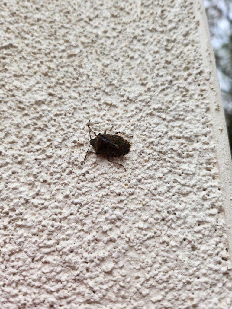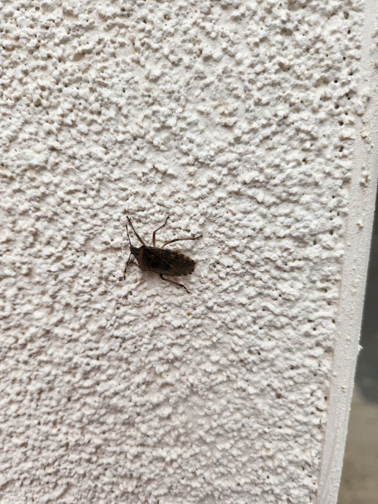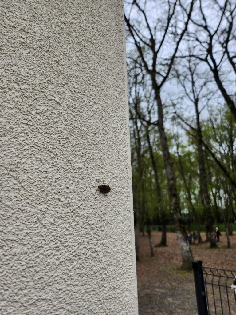 Les filles de CE1 ont trouvé une punaise grise sur le mur extérieur de la cantine.