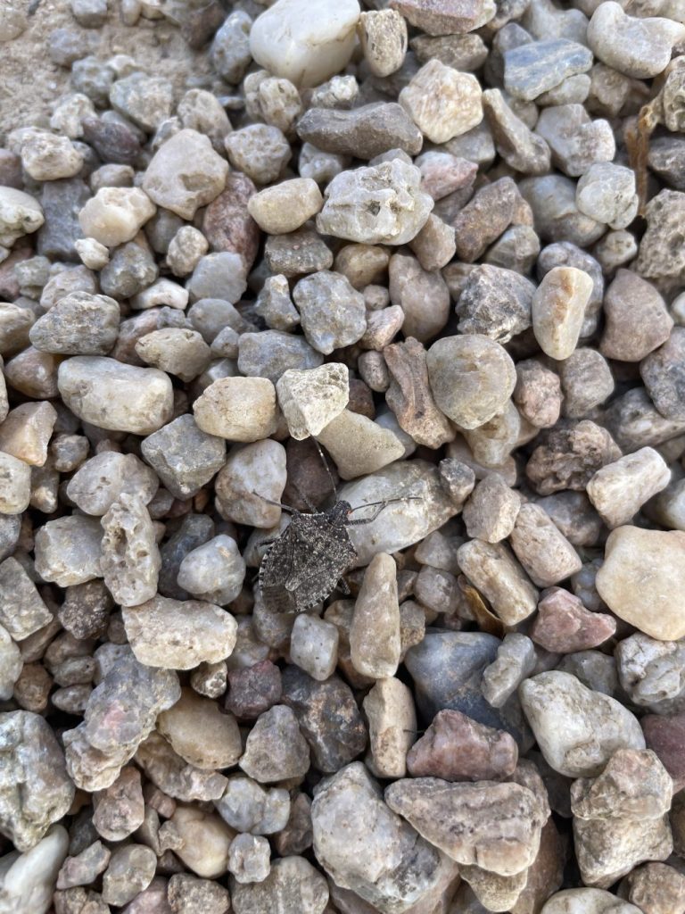 Le soir, Ă la garderie, des enfants ont trouvĂ© une punaise grise sous le toboggan vert sur les cailloux.”