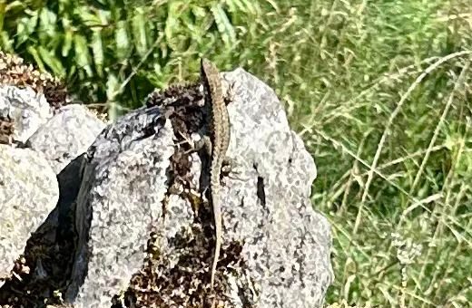 Quand nous sommes allés visiter le nouveau musée ambulant de Pleumartin, nous avons trouvé sur le muret en pierres un lézard. Il fallait être attentif et réactif pour le prendre en photo !