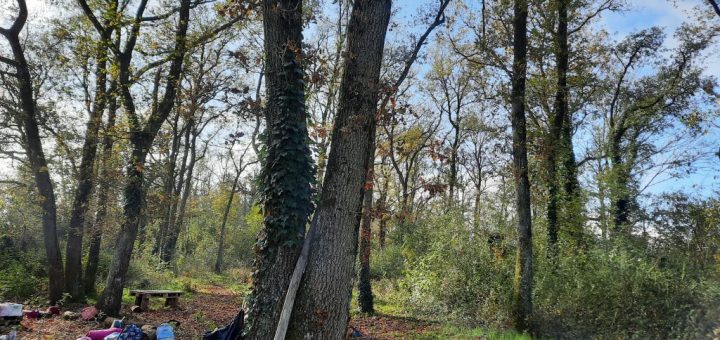 Lorsqu’on fait classe dehors nous nous retrouvons dans un bois près de l’école. Notre coin regroupement se trouve au milieu de plusieurs chênes. Ils sont très hauts mais par les troncs ne sont pas...