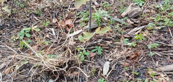 Derrière le toboggan du parc des montgorges, des petits arbres ont été plantés. Nous avons reconnu un chêne grâce à ses feuilles, il est encore tout petit.