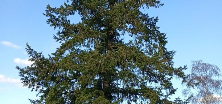 En allant au city stade pour notre séance de sport, nous avons vu ce sapin dans le jardin d’un voisin.