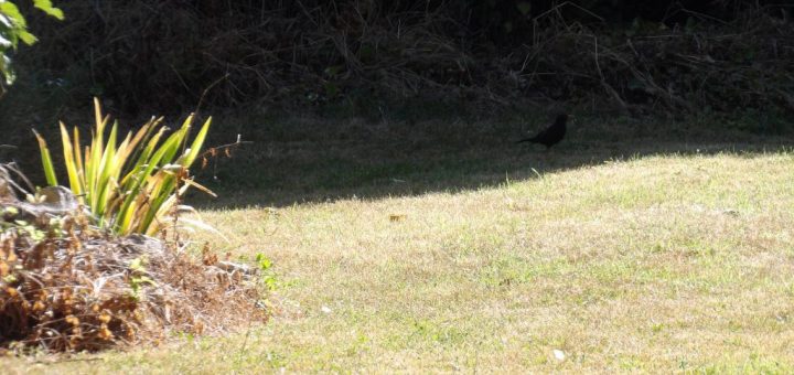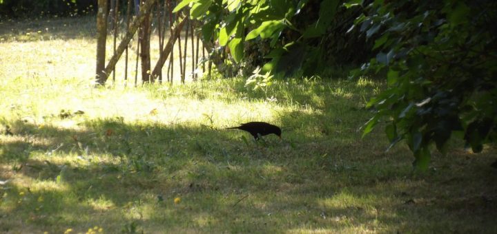 Le merle était dans un jardin. Mais c’était difficile de le prendre en phot, il bougeait ! Il cherchait des petites bêtes à manger dans l’herbe.