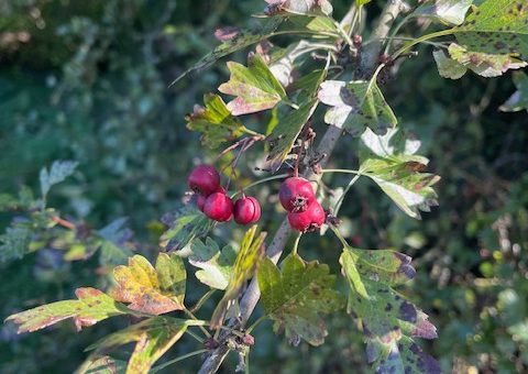 Nous avons cherché l’aubépine dans les haies autour de l’école, de la cantine et en dehors de l’école. Nous avons trouvé des arbustes qui avaient eux-aussi des fruits rouges ou oranges mais les feuilles...