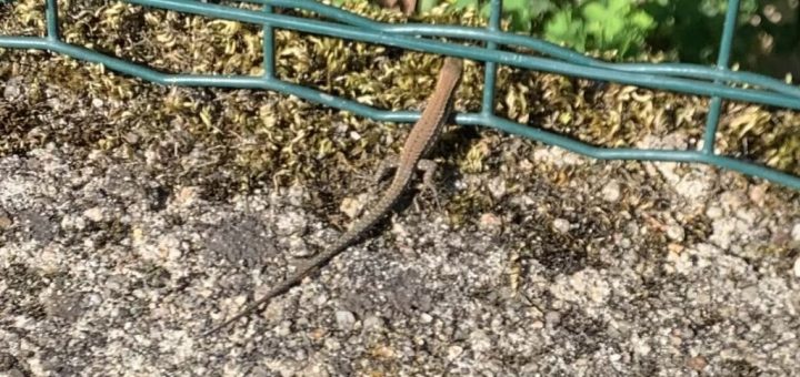 Nous avons vu un lézard sur un mur de la garderie. Il était au soleil.