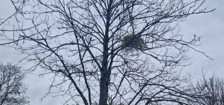 Nous avons vu de loin une grosse boule de gui sur un arbre. Nous n’avons pas vu de boules blanches.
