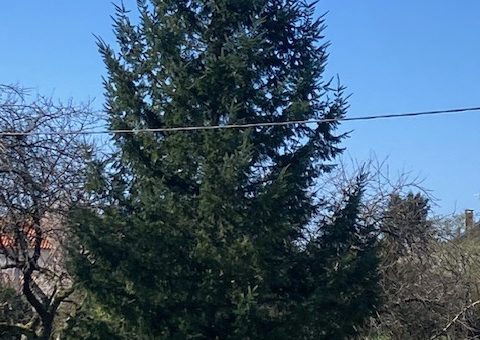 En allant au city stade pour notre séance de sport, nous avons vu ce sapin dans le jardin d’un voisin.