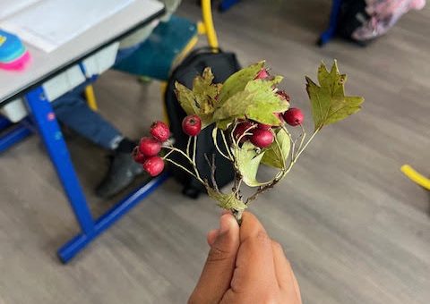 Quelle surprise ! Ce matin, Yoni nous a rapporté une branche d’aubépine trouvée dans la forêt de Givray que nous connaissons bien à Ligugé. Plusieurs élèves avaient trouvé des plantes similaires près de l’école...