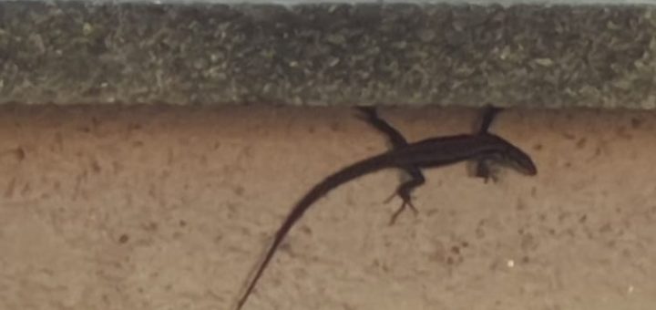 Sur le mur, près du bac de la cour, les enfants de la garderie ont aperçu un lézard. Ils se sont approchés doucement avec Caroline notre ATSEM pour le photographier. Il est vite reparti...