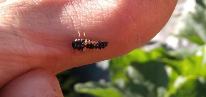 Loïs, du jardin d’insertion, avait tout un tas de coccinelles qui mange les pucerons. Il y avait aussi des larves de coccinelles.