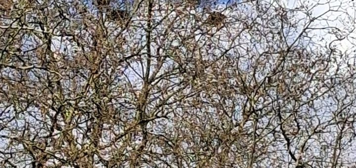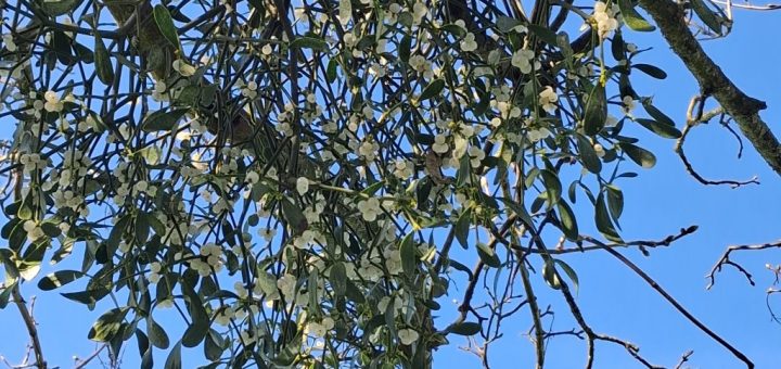 Nous avons eu la chance de passer deux jours et demi au château de Beauvoir et lors de nos balades dans le parc nous avons pu observer des boules de gui tout en haut...