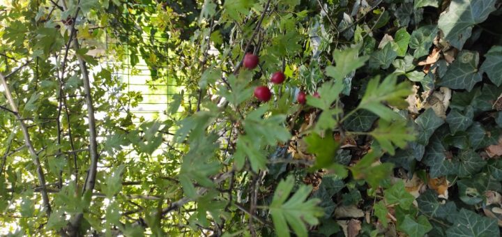 Nous avons cherché de l’aubépine dans une des cours de l’école, nous avons cherché le long des haies. Puis nous en avons trouvé une à côté des voitures