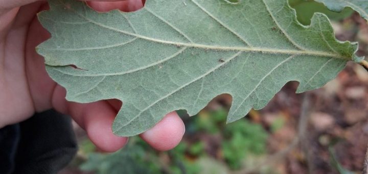 Nous avons trouvé un jeune chêne pédonculé dans notre mini forêt. Or, nous avons 3 types de chêne. Nous avons dû faire des recherches pour apprendre à les reconnaître. Nous avons observé les lobes...