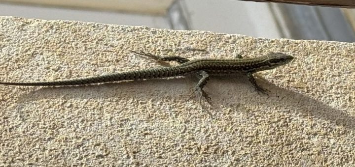 Bonjour Woody,Nous avons trouvé notre lézard sur le mur de la mairie dans la cour de l’école. Il se prélassait au soleil.