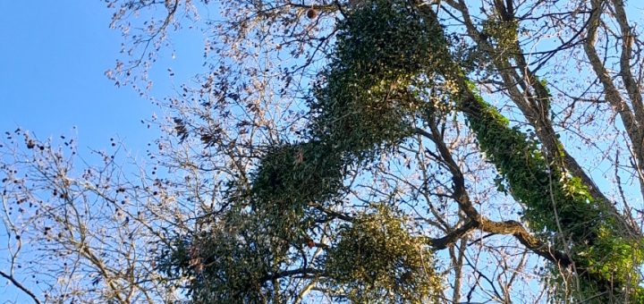Nous avons aperçu les boules de gui au loin dans les arbres de la haie au-dessus de l’étang. En nous approchant, nous avons reconnu ses feuilles et sa forme. Au sol, nous avons même...