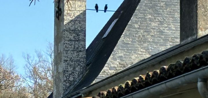 En nous rendant à la médiathèque ce matin, nous avons vu une corneille noire posée sur une cheminée. Nous en avons aperçu aussi en plein vol durant la récréation.