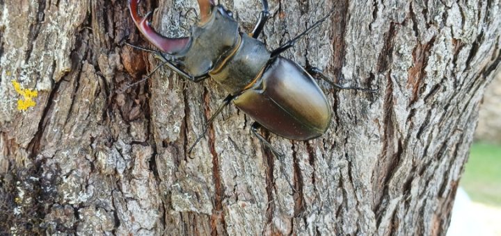 Ce sont les garçons de MS qui ont découvert une “grosse bête noire qui a des pinces” sur le tronc de l’arbre. Il a été facilement identifié comme un très beau Lucane cerf-volant.