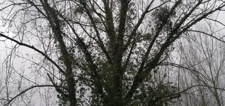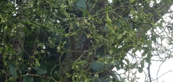 Nous avons eu la chance de passer deux jours et demi au château de Beauvoir et lors de nos balades dans le parc nous avons pu observer des boules de gui tout en haut...