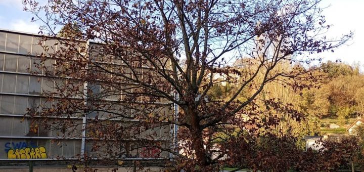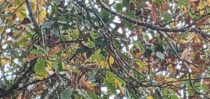 On a trouvé des chênes dans la forêt de Colombiers pendant l’école dehors. Les feuilles du chêne changent de couleur et tombent, elles sont caduques.