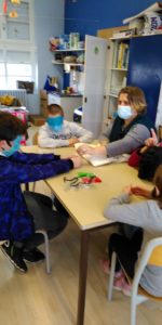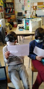 Dans la classe, nous avons organisé à l’aide de Lydie et d’Elise (SESSAD déficients visuels) des ateliers de déficience visuelle pour mieux comprendre ce que cela fait de ne pas bien voir.Pour participer aux ateliers, on portait des lunettes ou des masques qui nous empêchaient de bien voir.