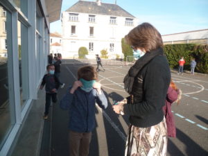 Sulivan: “J’ai touché les deux arbres.Je suis allé au tableau avec les craies sous le préau.je suis allé dans le gymnase puis dans la cour des CP.J’ai touché des bancs.Ça m’a plu, on s’est promené partout.”