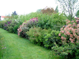 La haie champêtre est plantée de différentes espèces: Aubépine, cornouillee, églantier, érable…)