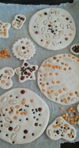 Défi n°5 Publié le 15/05/2020 par 0160775f Timéo Nolan Sofia Gina Louise Paul Lina Land art avec des graines à placer sur de la pâte à sel.