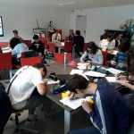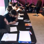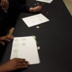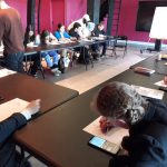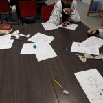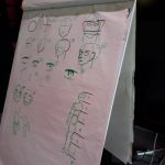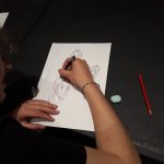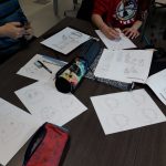 Ensuite, elle nous a montré comment on crée un personnage, d’abord en écrivant ses caractéristiques, son histoire, ses objets fétiches, puis, en le dessinant. Pour cela elle nous a montré un modèle de corps humain qu’on a essayé de reproduire à notre manière.