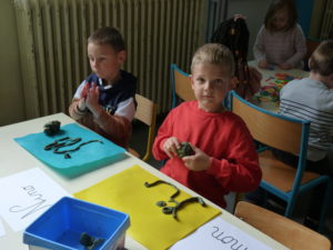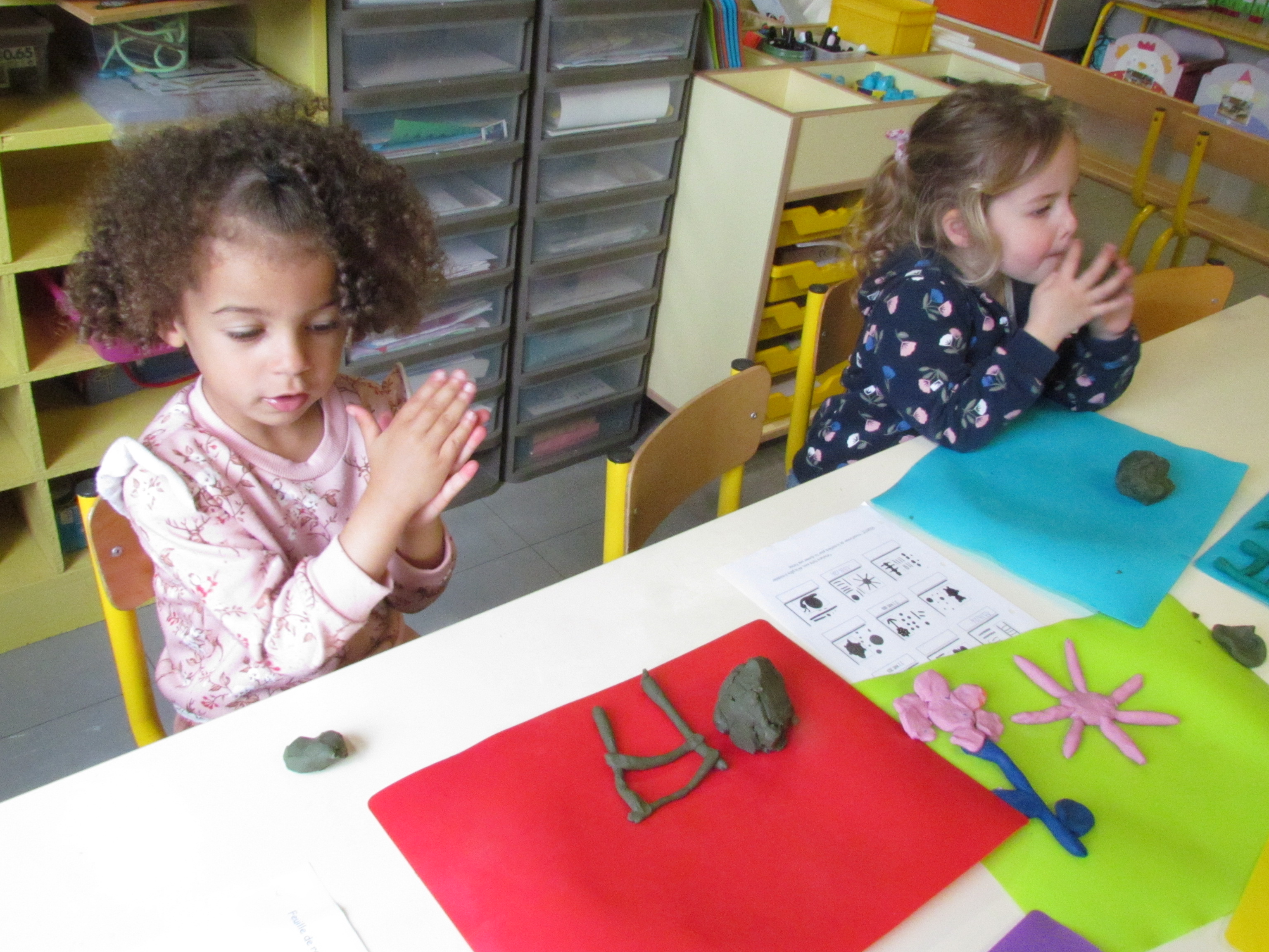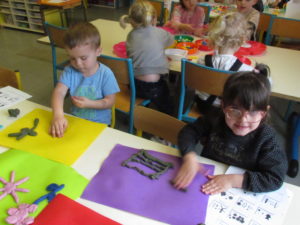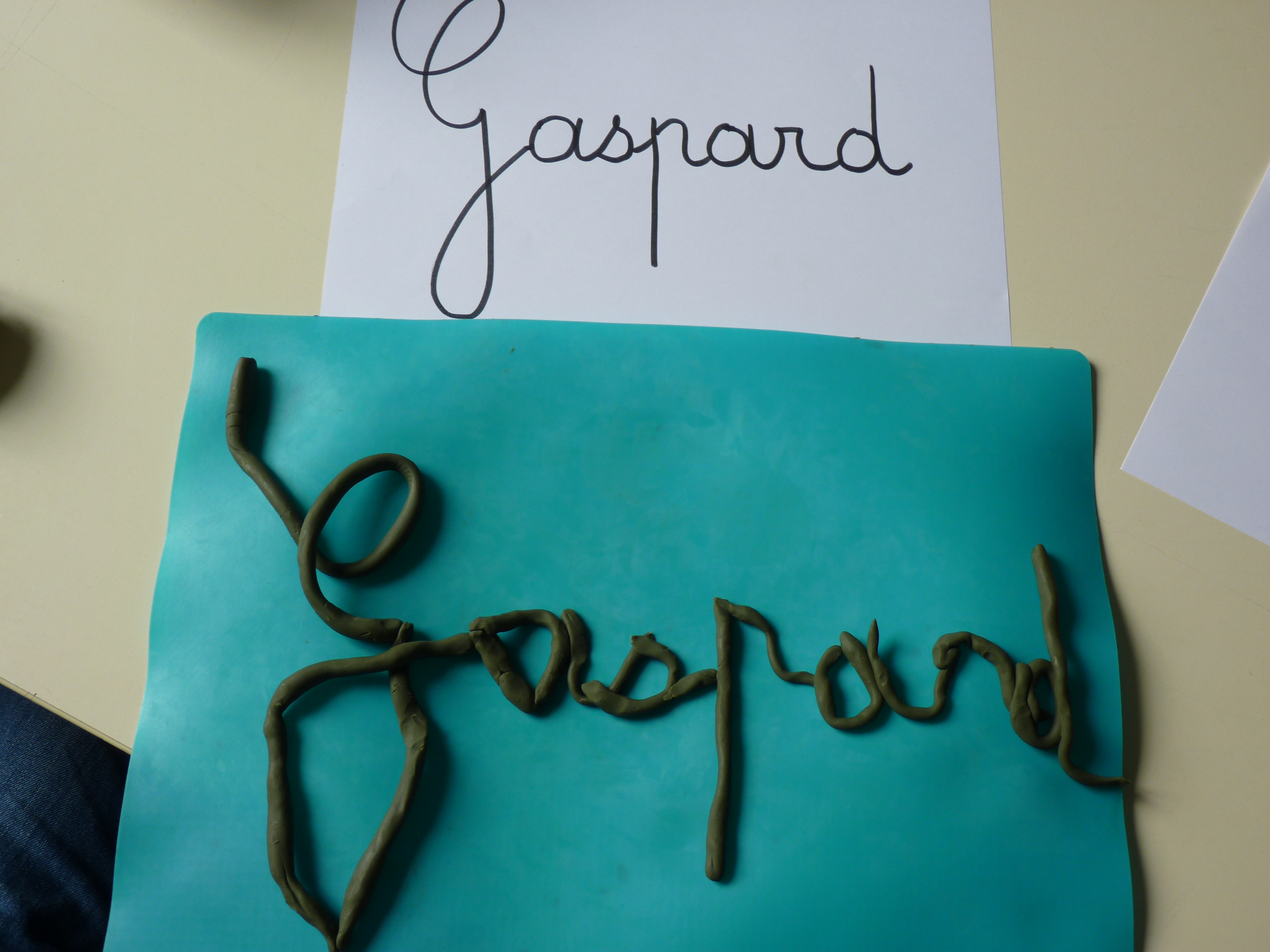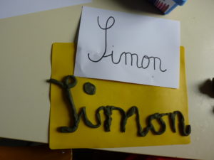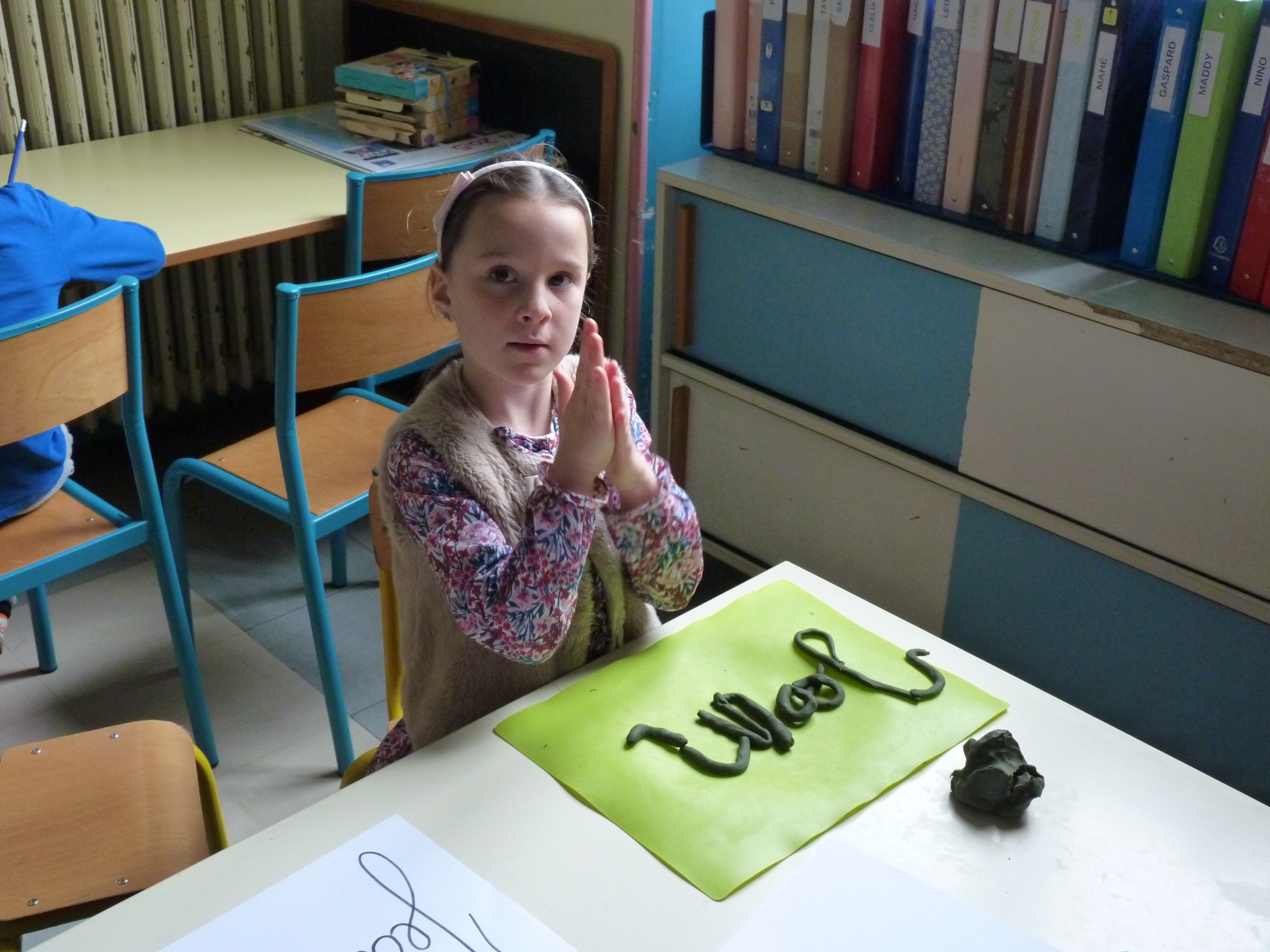 - Les Grands découvrent l’écriture cursive. pour commencer, nous reproduisons le modèle en pâte à modeler.