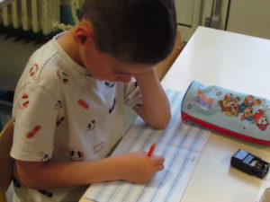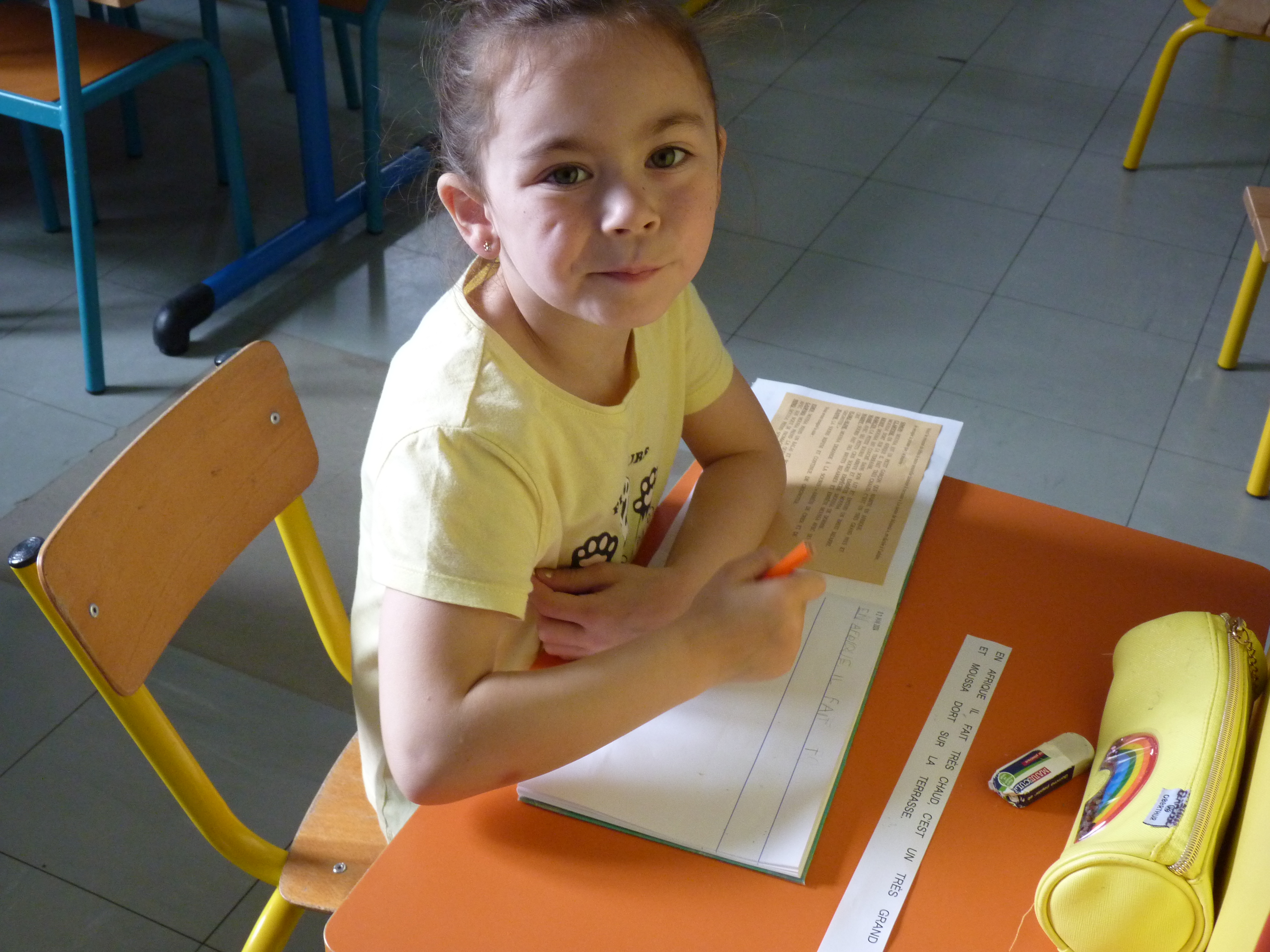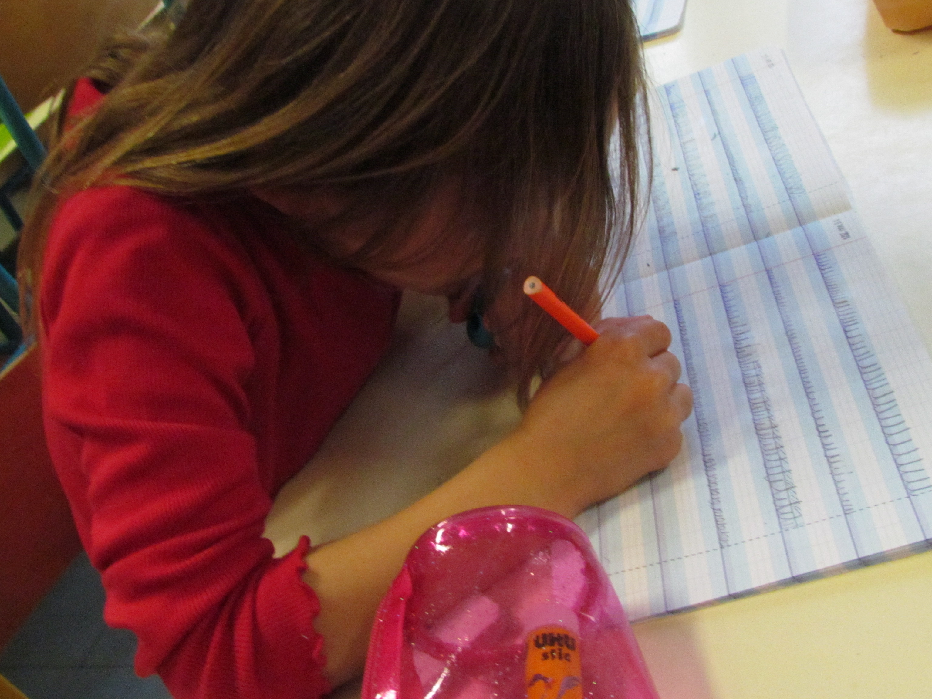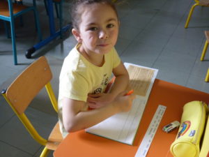 C’est aussi la période de la découverte de l’écriture cursive. Nous avons de nouveaux cahiers. il faut bien s’appliquer. Ces cahiers serviront ensuite au CP chez maîtresse Céline.