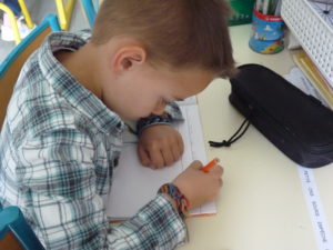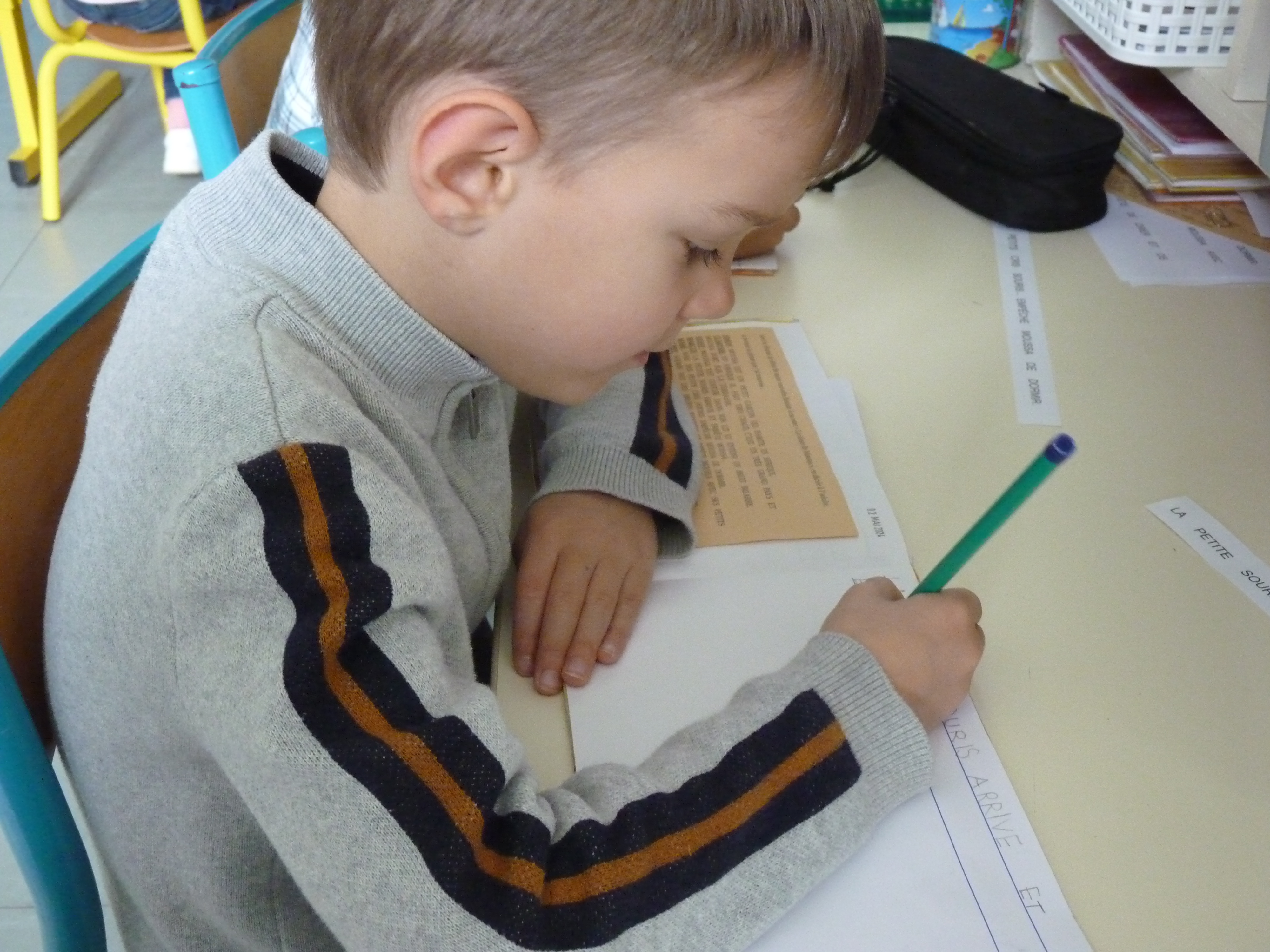 - Les Petits écrivent en CAPITALES. Certains commencent à l’écrire sans modèle.