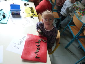 L’après- midi avec les Grands nous travaillons beaucoup la PHONOLOGIE en faisant des petits jeux à l’oral. Nous rions beaucoup!