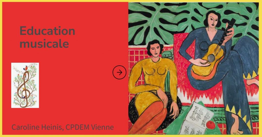 Voici un diaporama avec de nombreuses ressources pédagogiques en éducation musicale proposé par Caroline Heinis Conseillère pédagogique départementale musique (chant, percussions corporelles, écoute etc….) pour les cycles 1 , 2 et 3 :