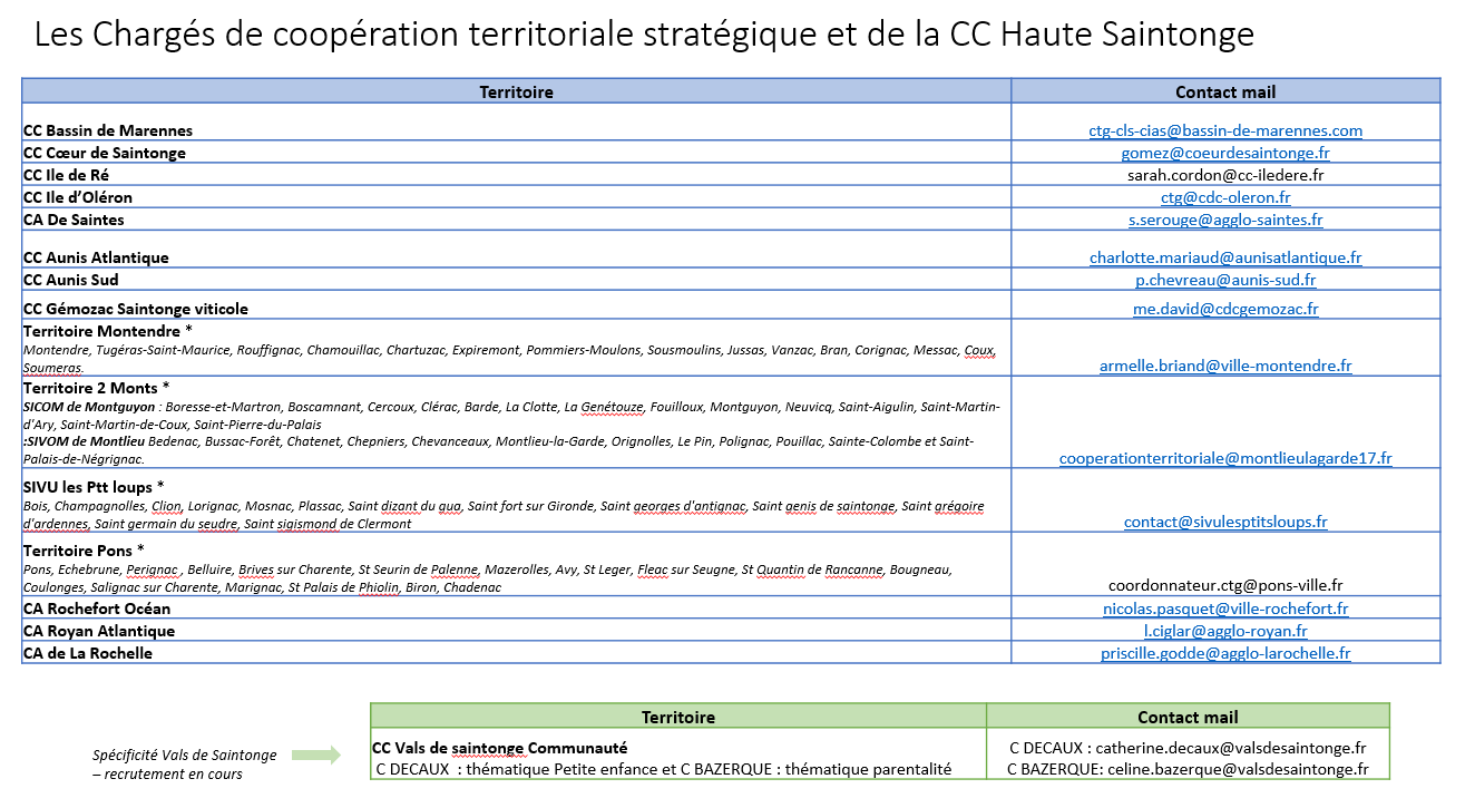 La carte N°2 précise le chargé de coopération territoriale présent sur chaque collectivité. Le tableau final vous donne les coordonnées de chacun d’eux.
