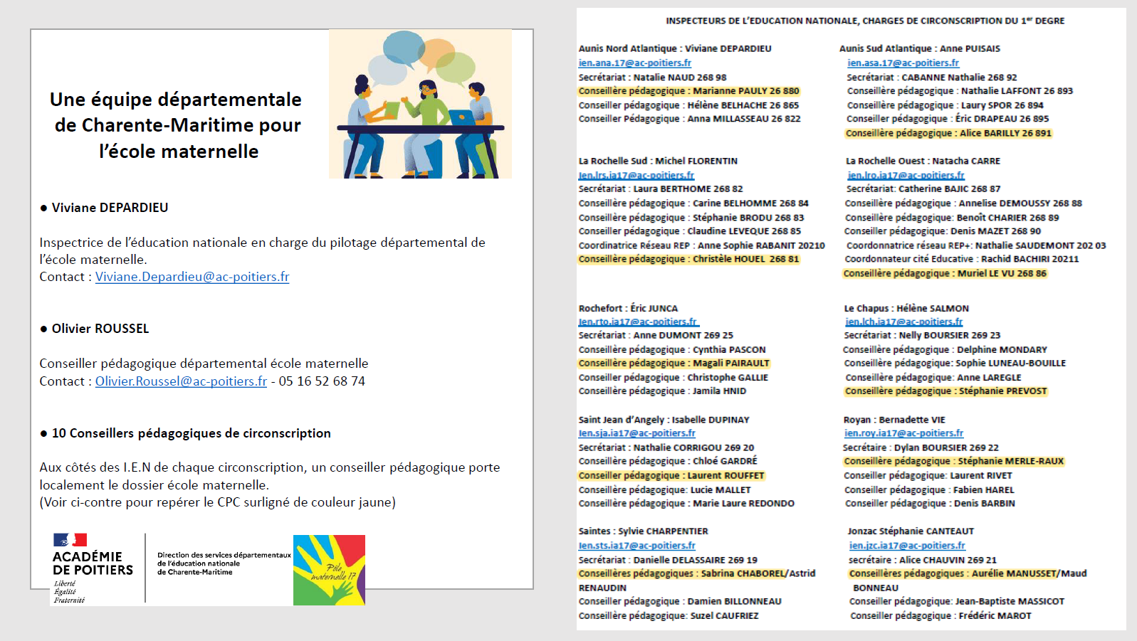 Contacts Une équipe départementale autour de l’école maternelle présente sur l’ensemble du territoire pour vous accompagner…