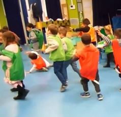 ressource vidéo montre comment associer la décomposition du nombre à une séance de motricité. Les élèves portent des dossards de couleurs différentes qui aident le repérage visuel. Cette expérience corporelle contribue à la reconnaissance et la mémorisation des différentes possibilités mathématiques dans la décomposition du nombre : vidéo