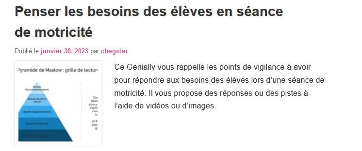 Ce document est à mettre en lien avec le génially de Nicolas Printemps sur les différents besoins des enfants présent sur ce même blog dans la partie théorique.
