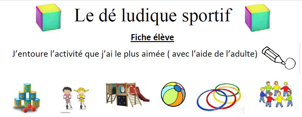 Ce jeu permet de réactiver différentes activités sportives déjà connues des élèves. Chaque face du dé représente un atelier sportif à réaliser en petits groupes ou avec une moitié de classe. Un enfant lance le dé. Il explique à l’oral l’activité à réaliser au reste du groupe. A découvrir : Le dé ludique sportif