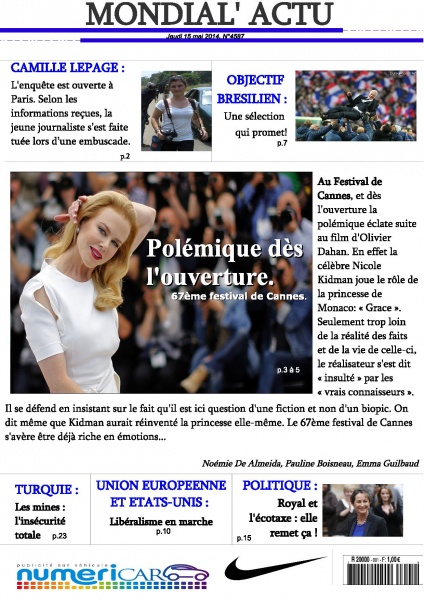 En mai 2013, les élèves de première ES ont participé à un concours de « Une » de journaux organisé par les professeurs de Sciences Economiques et Sociales. Les heureux lauréats du concours se sont déplacés le mercredi 9 octobre au Théâtre Auditorium de Poitiers. Ils sont devenus journalistes dans le cadre d’une journée organisée par le CLEMI, la Ligue de l’Enseignement et le Club de la Presse 86.