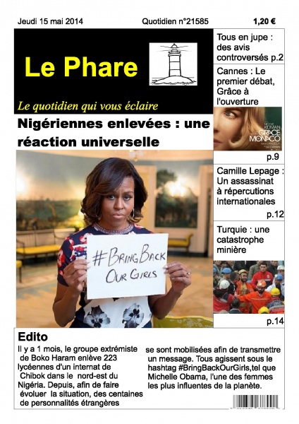 Voici les résultats du concours de Unes organisé pour trois classes de première ES les 6 et 15 mai. Le Jury était composé de 4 professeurs de SES du lycée, des documentalistes du CDI , et d’un professionnel de l’information, Mathieu Sarfati, Journaliste Reporter Indépendant, producteur et réalisateur de documentaires pour Arte et M6, pendant un temps journaliste à RFO. Chaque membre du jury disposait de 70 points au total à attribuer aux travaux les plus aboutis.La dispersion des résultats a été très grande cette année.