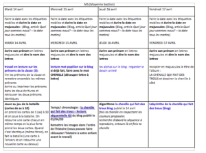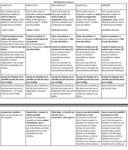 Votre enfant doit placer une carte dans chaque case du tableau :