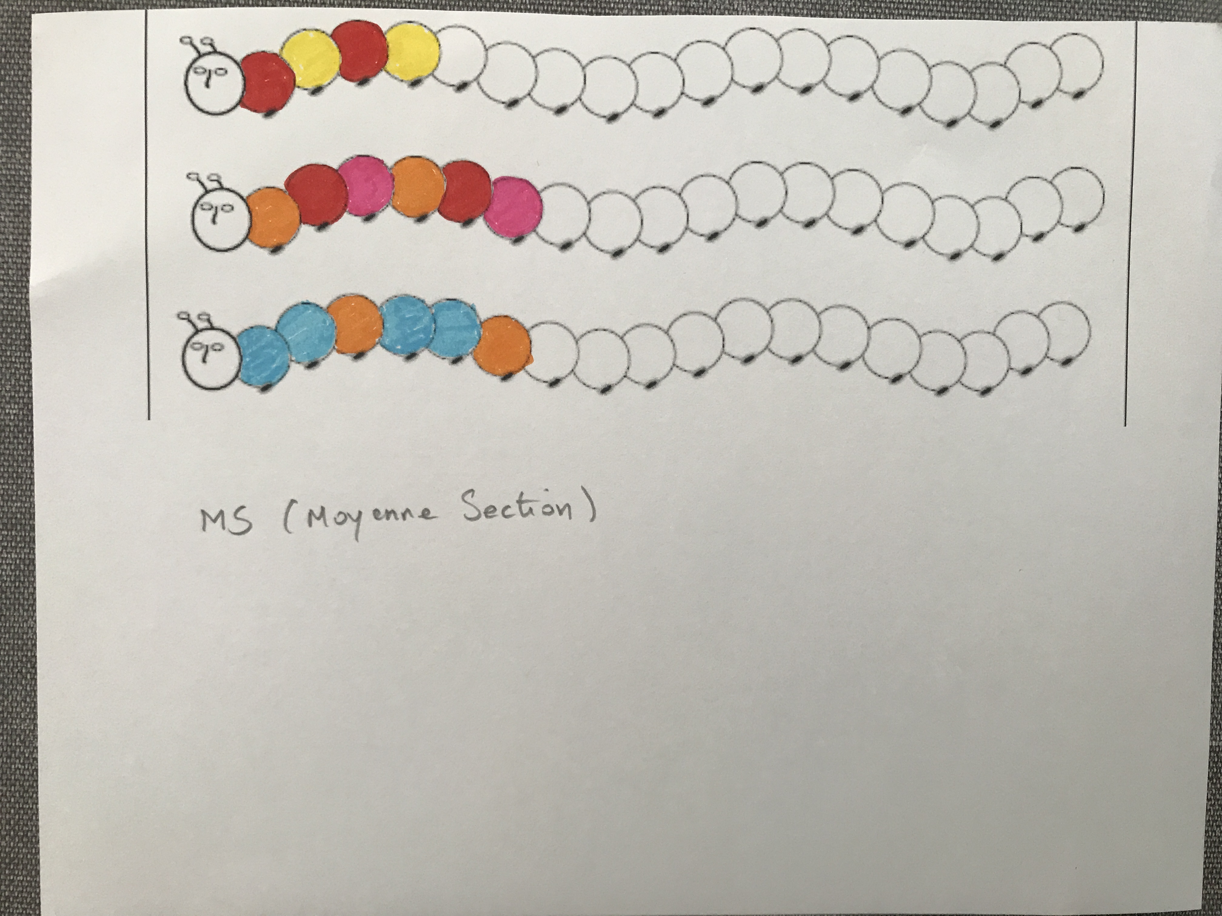 - sur la ligne qui convient (en respectant le motif).