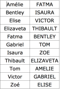 - dans la colonne qui convient (en respectant la forme).